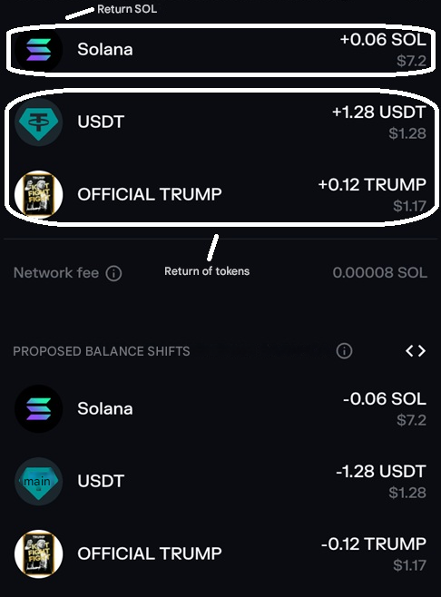 Wallets | Receipt of fake $Sol and tokens | Fake refund | Hidden $Sol and tokens withdrawal |